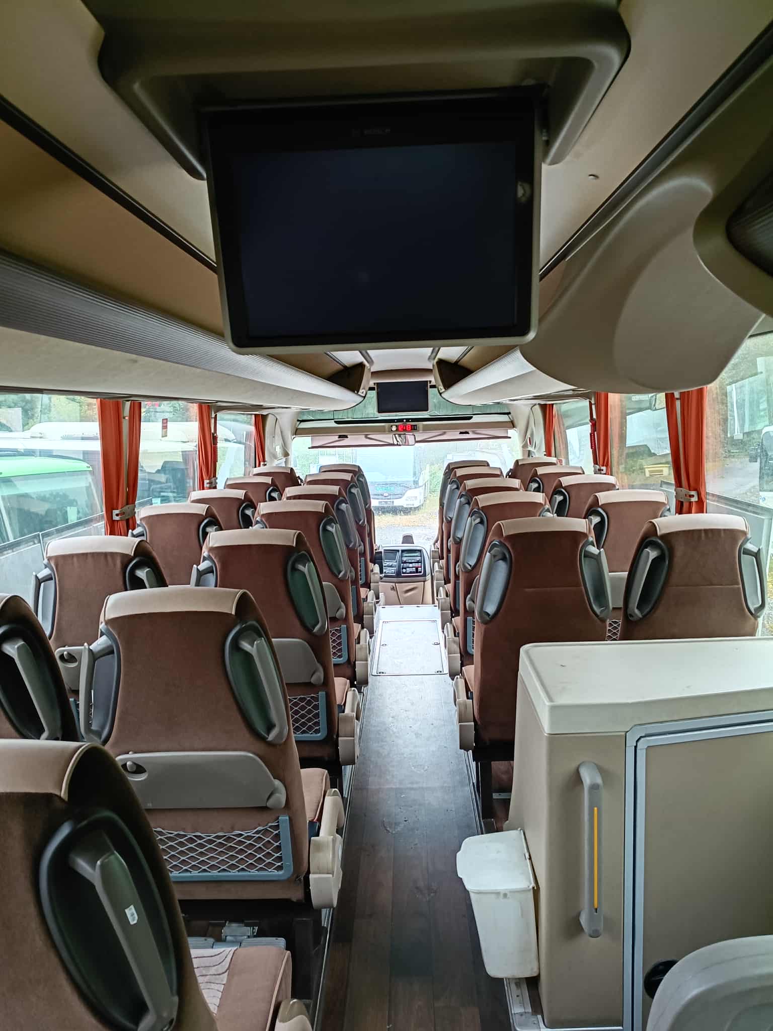 Dvojitá skla, centrál s DO, couvací kamera, el. ovládání oken a zrcátek u řidiče, imobilizér, lůžko, polohovací sedadla, audio, CD, dvě TV, DVD, kávovar, lednice, mikrofon, palubní počítač, tempomat, WC, zvedání karoserie, nezávislé topení, držák na skibox, závěs.