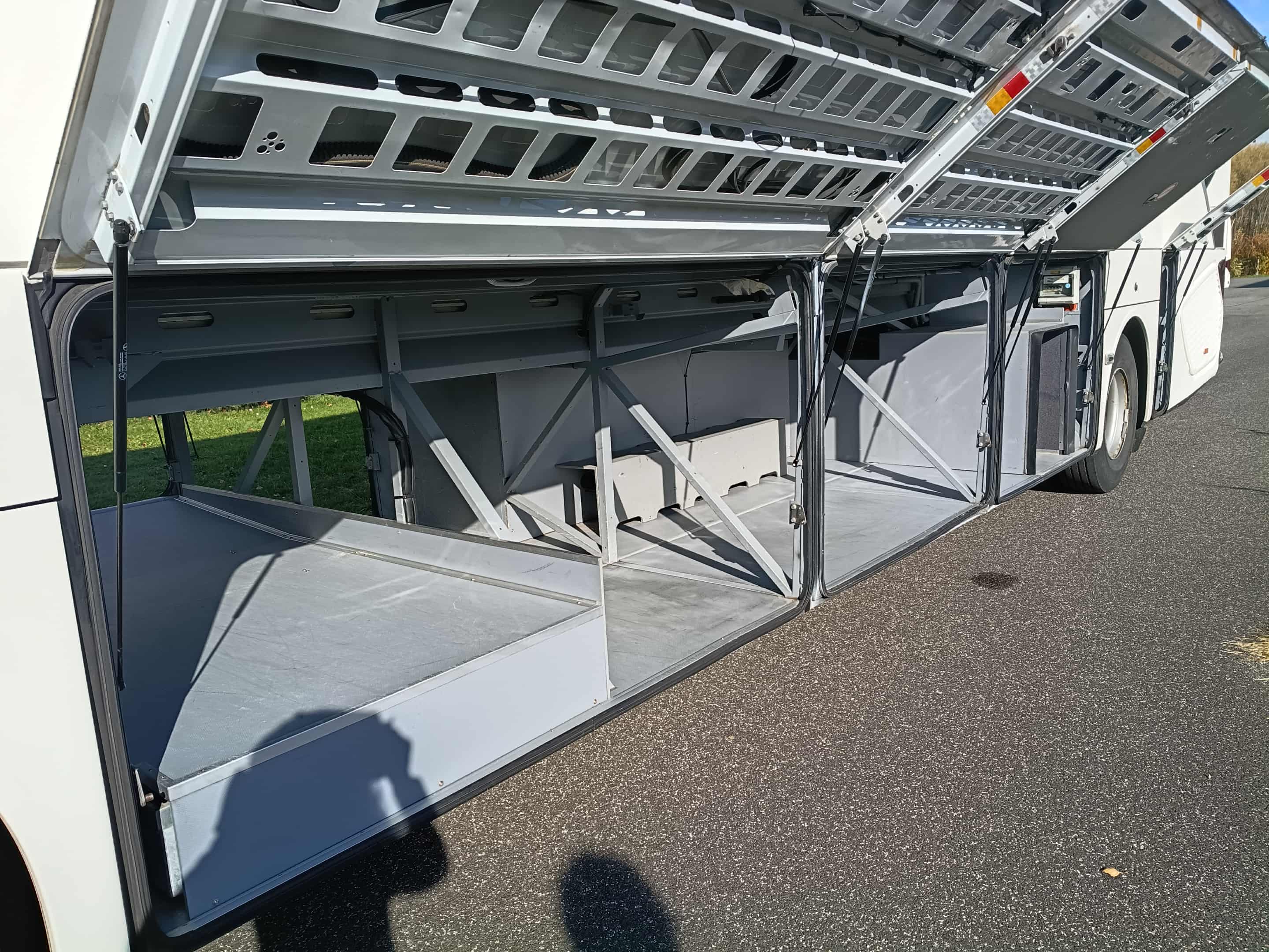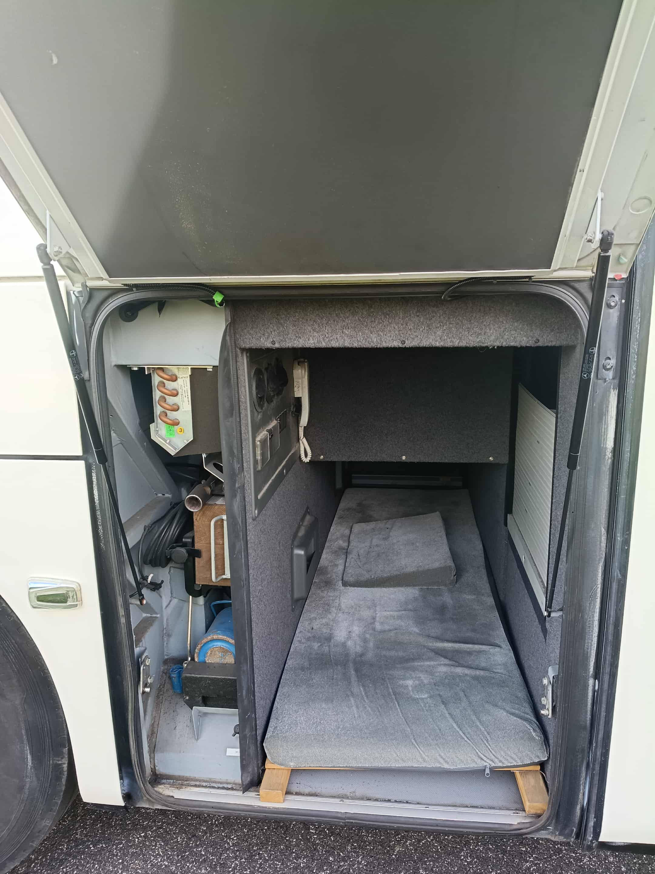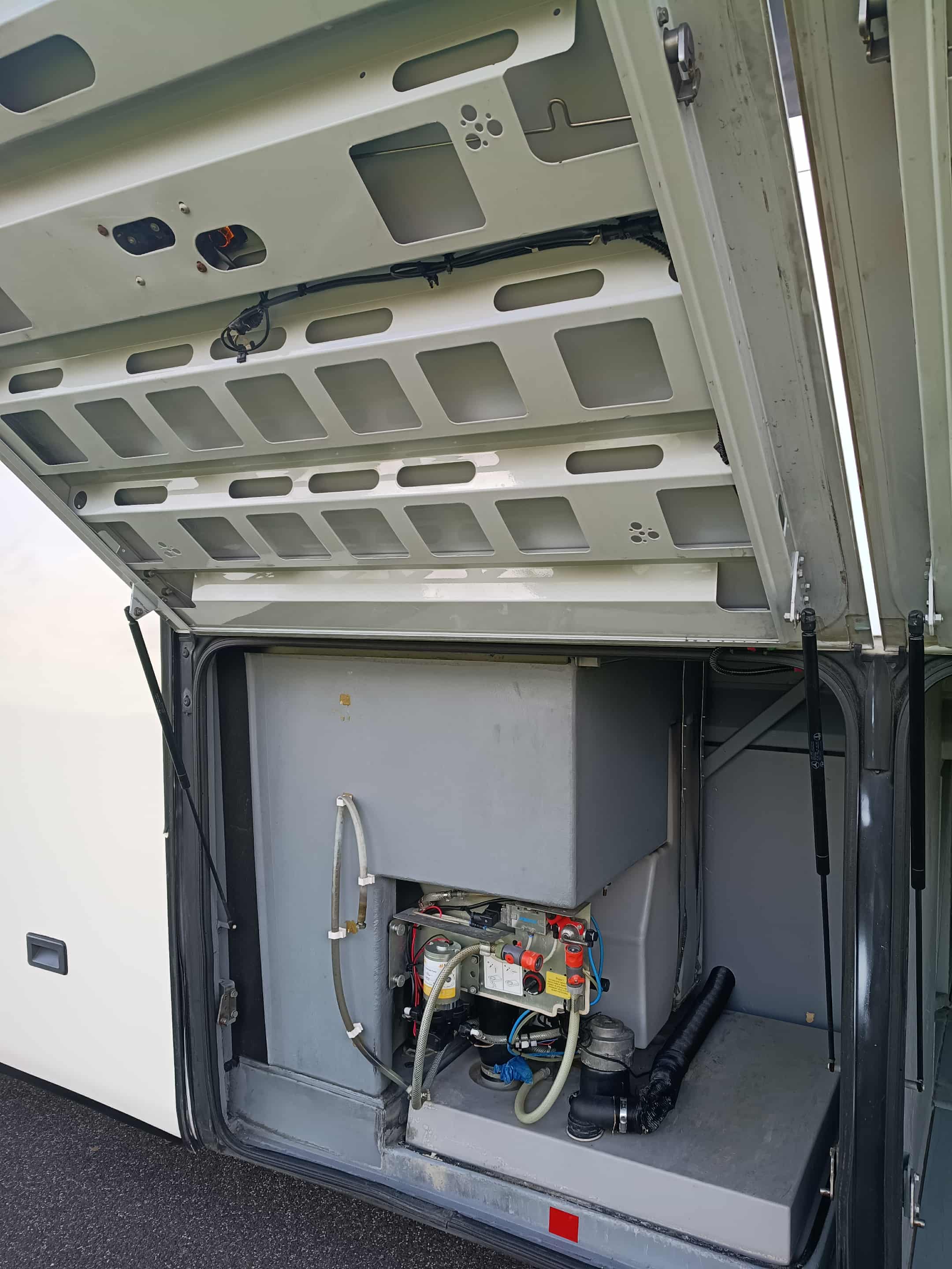 Dvojitá skla, centrál s DO, el. ovládání oken a zrcátek, imobilizér, lůžko, audio, CD, DVD, lednice, mikrofon, palubní počítač, tempomat, WC, zvedání karoserie, nezávislé topení, parkovací asistent, dvě TV, závěs.
