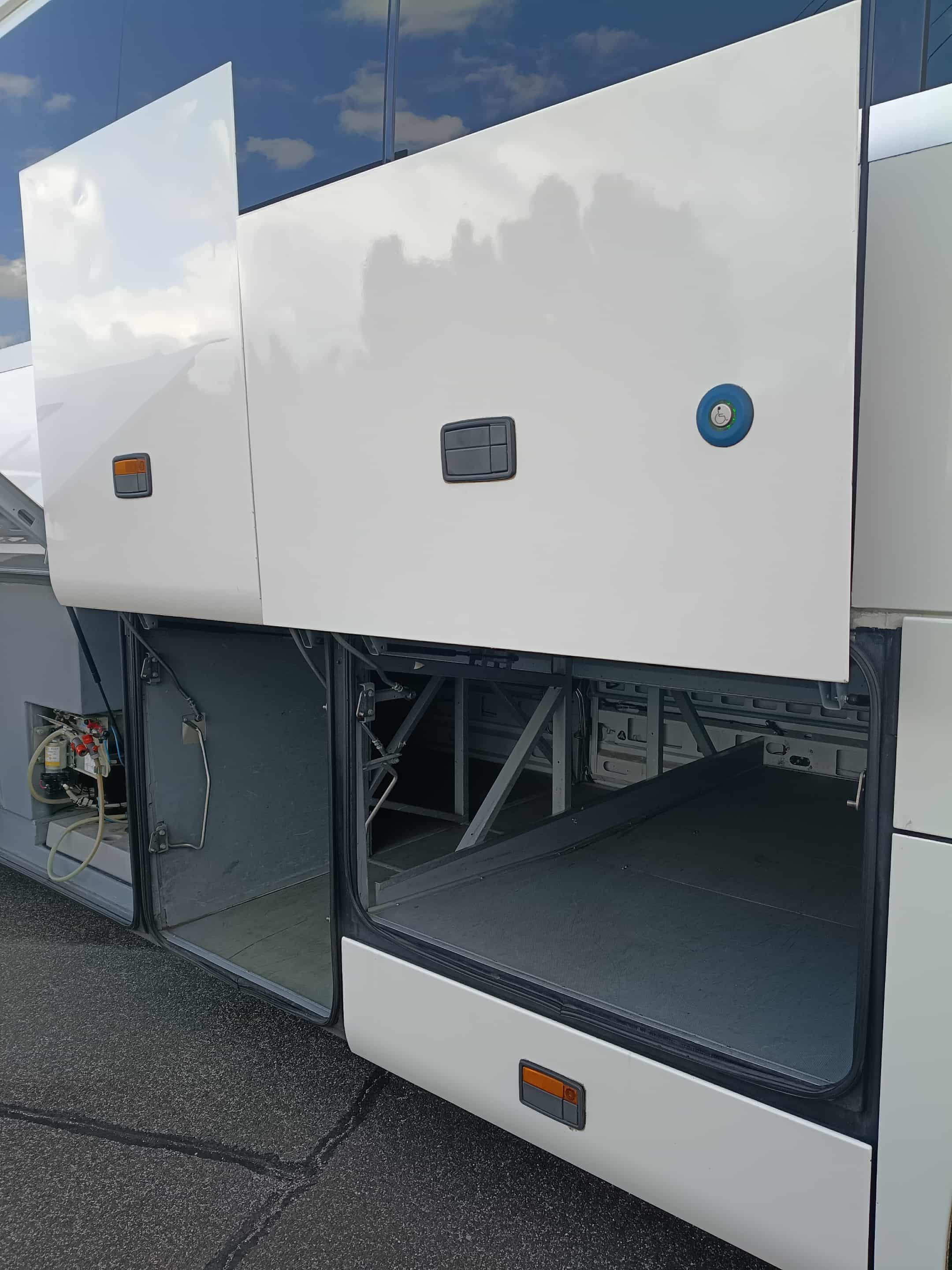 Dvojitá skla, centrál s DO, el. ovládání oken a zrcátek, imobilizér, lůžko, audio, CD, DVD, lednice, mikrofon, palubní počítač, tempomat, WC, zvedání karoserie, nezávislé topení, parkovací asistent, dvě TV, závěs.